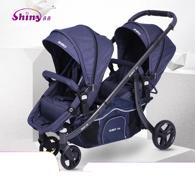 Cheap Shinybb twin stroller detachable lightweight folding front and rear seat dragon and phoenix second child double car artifact